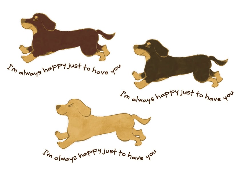 楽しく一生懸命に走る、ダックスフントのイラストのフルカラーシートです。