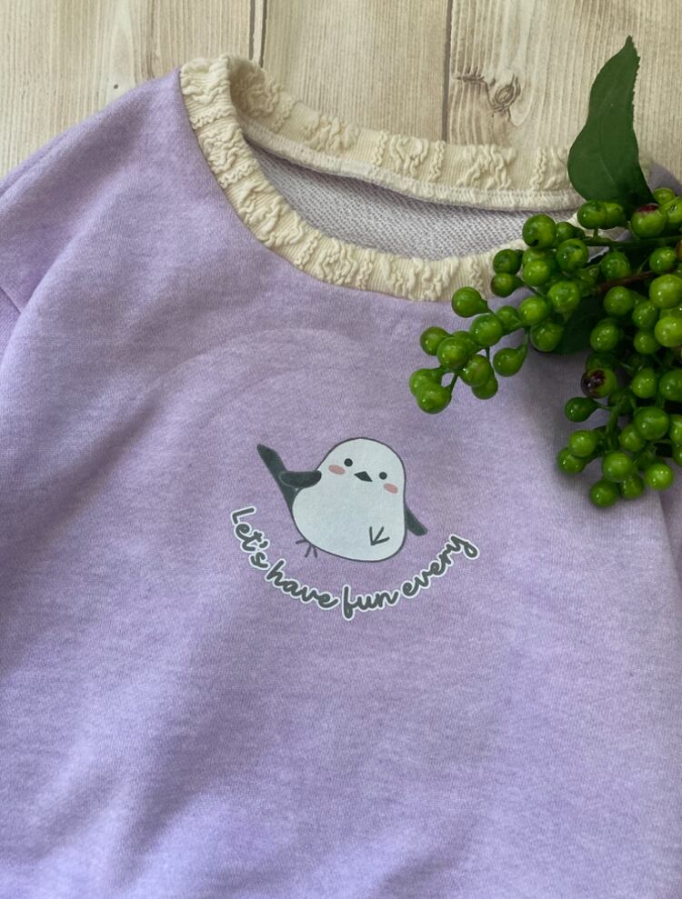 柔らかなタッチで描いたシマエナガが、小さなあんよをえいっとあげているポーズです。